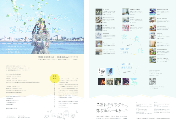 こぼれるサラダと落ちたホールケーキ閉園しました。誠にありがとうございます。 お越しいただいた方々の特別なひとときになっていたら幸いです。 雨の日と晴天の日と梅雨らしい2日間となりましたが、お越しいただいた方々ありがとうございます。会場を居心地良い空間に包んでいただいた出店者さま、出演者さま。当日たくさん動いて頂いたスタッフのみなさん、本当に感謝でいっぱいです。ありがとうございます。 デザイン制作、ステージ制作、音響周り、折り込みの協力など、たくさんの方々に支えられながら無事に開催することができました。しみじみと感謝が湧き出てきます。誠にありがとうございます。 そして、ご支援いただいた皆様の全面的なご協力のおかげで、開催できました。深くお礼申し上げます。クラウドファンディングは残り2日となりました。最後までお力添え頂けると幸いです。よろしくお願い致します。