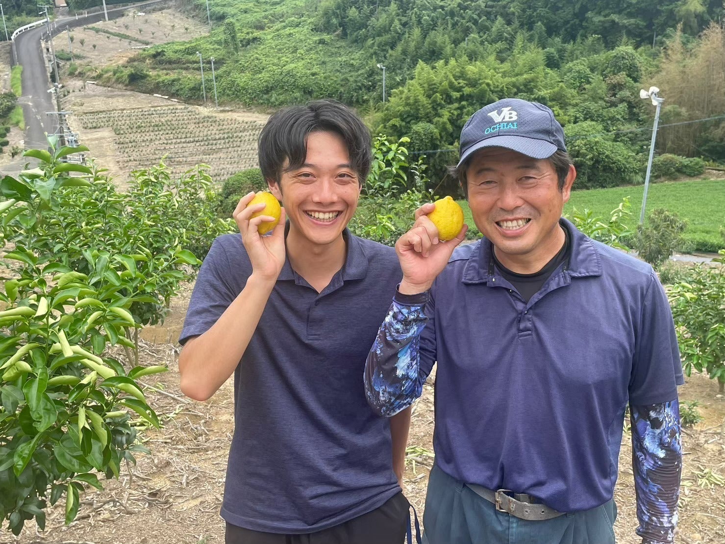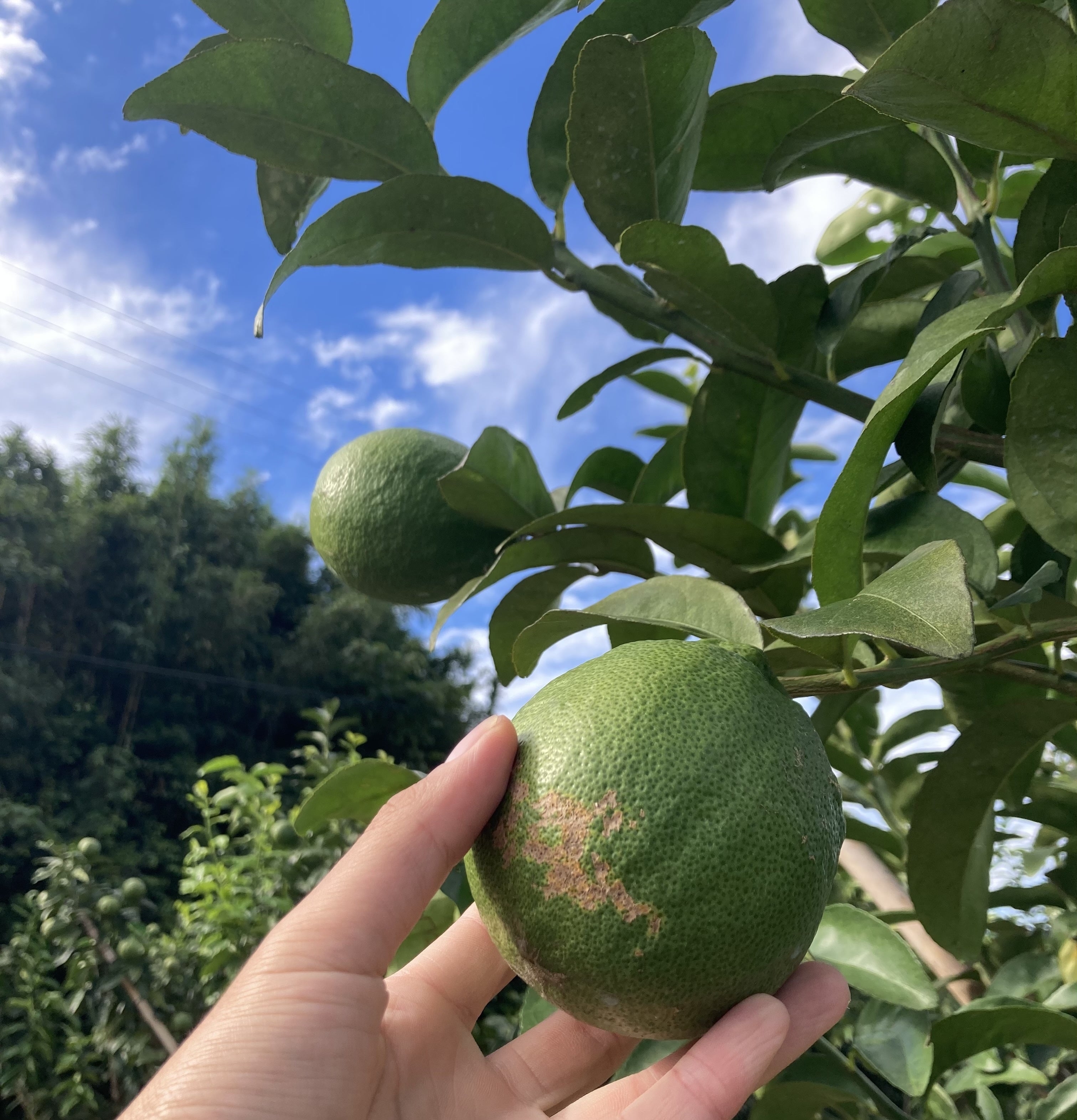 今回は璃の香を畑よりご紹介!璃の香の特徴はなんといってもこの大きさ!重さは他のレモンの2倍以上!さらに皮が薄く種も少ないため、ほとんどが果汁です!酸味も少なく香りもさっぱりとしているため、お菓子作りなど果汁をたくさん使いたい時にぴったり!今はまだ出荷量が少ないため、数量限定です!ぜひお試しあれ!