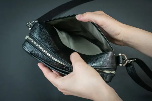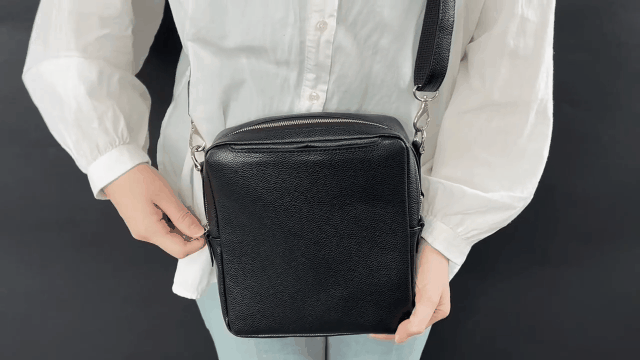 「大人クロスボディバッグ」はオールレザーのなのに、革の厚みと芯材を調整したことで、なんと「約320g」と、とても軽いバッグにすることができました。
