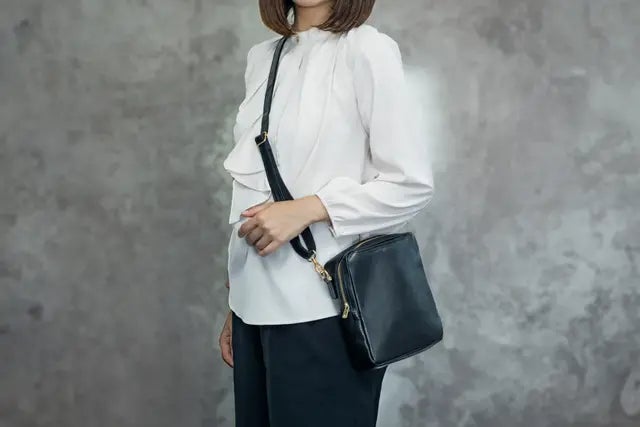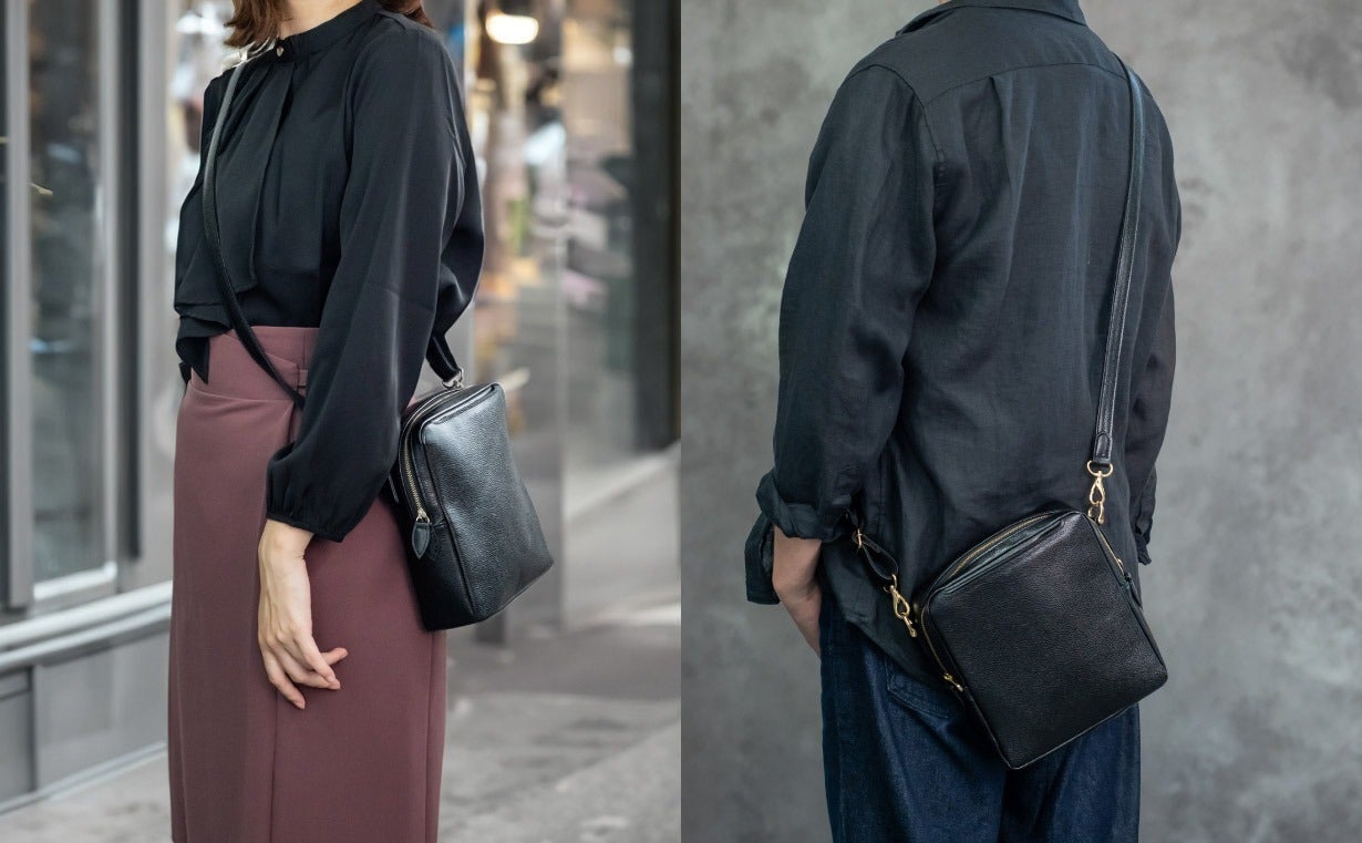 「大人クロスボディバッグ」は上辺を短くすることなく、ファスナーの位置を中心より前側にしました。なおかつ内装の仕様を工夫したことで、美しいフォルムなのに使い勝手も良いバッグになりました!