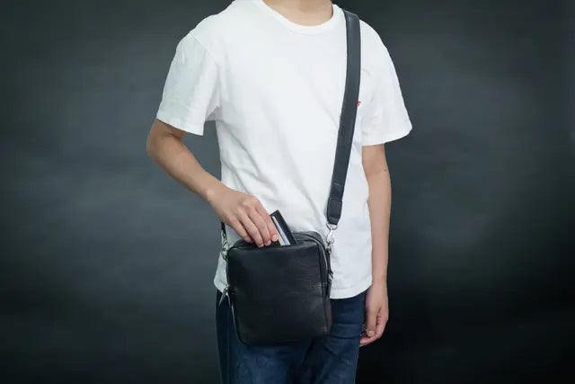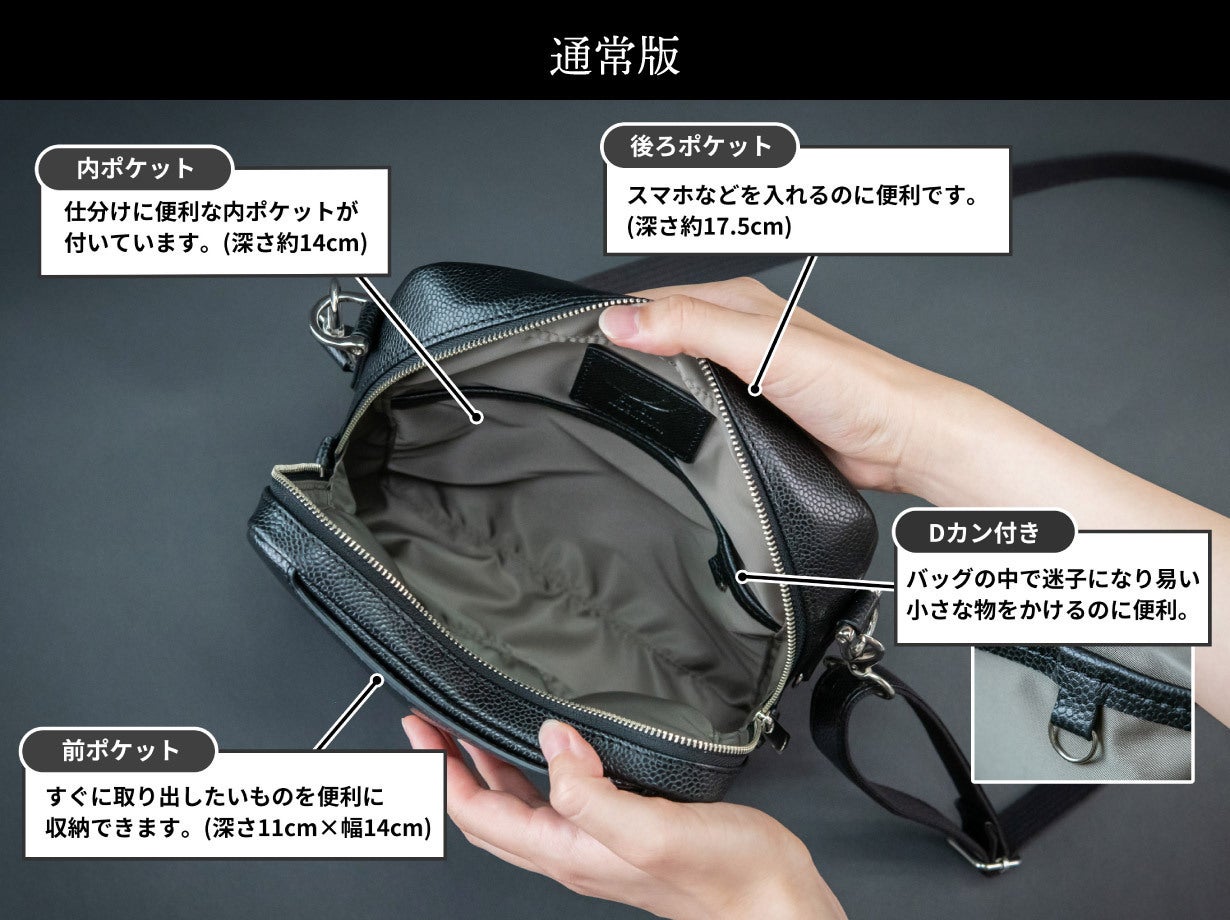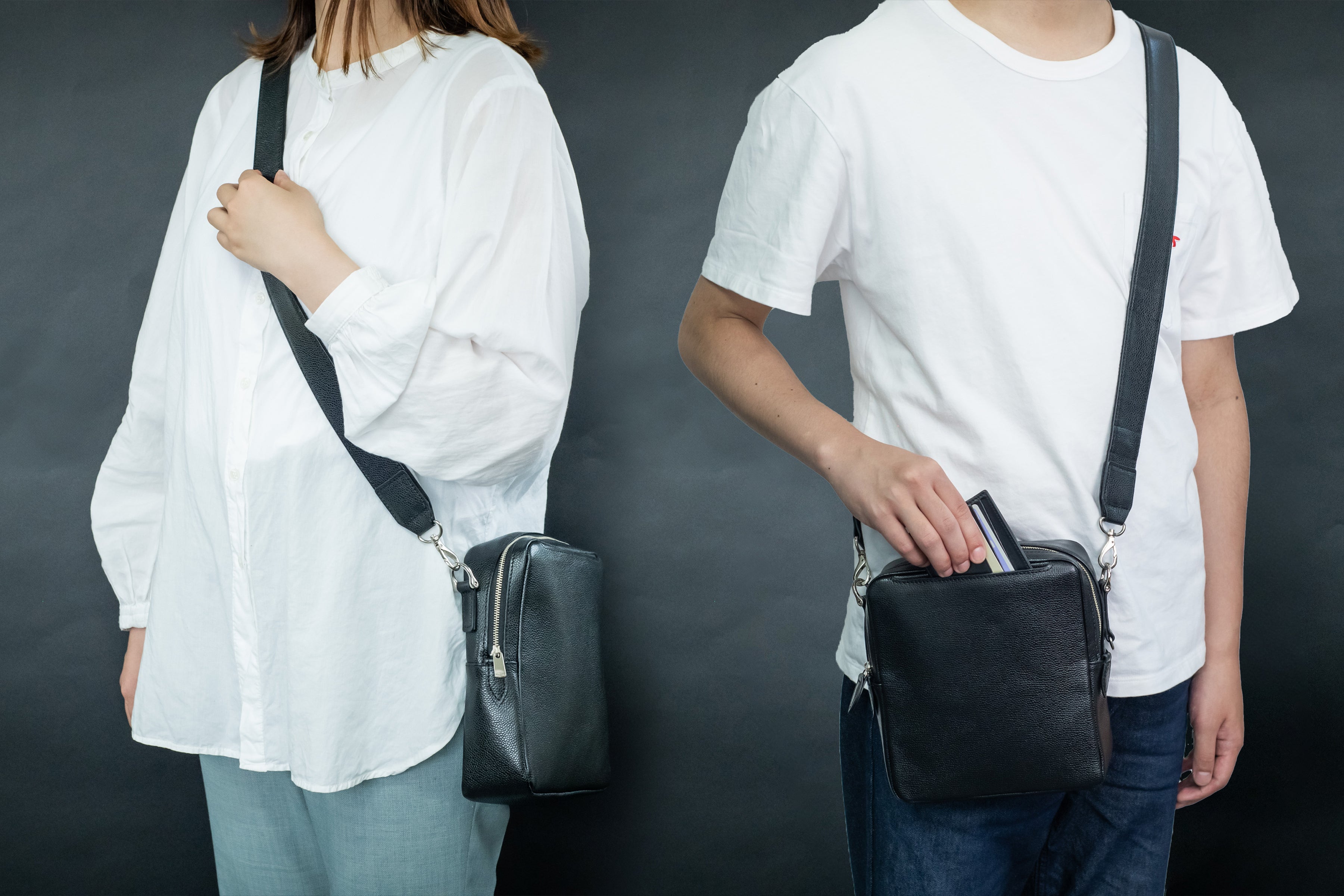 使い勝手にもこだわり、クロスボディバッグに2つのポケットを常設させました!電車に乗る際や、スマートフォンを操作することを考え、それぞれアクセスしやすいようこだわりました。