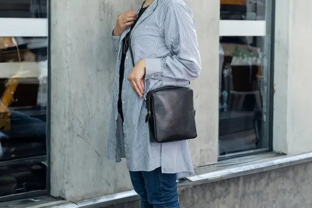 天然皮革(本革)の圧倒的な魅力は、長く使い続けることができることです。合成皮革(合皮)は使用していると加水分解などが原因で、早いものだと1年もせず、破れたり、ボロボロになってしまうことがあります。「大人クロスボディバッグ」に使用している革は本革です。丈夫なので、長くお使いいただく事が出来ます。