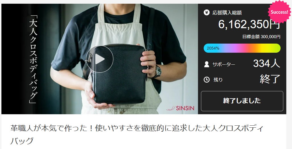 前回の「大人クロスボディバッグ」は600万以上のご支援が集まりました!