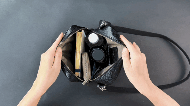 入口が大きく開く設計のため、何がどこに入っているかすぐにわかります。