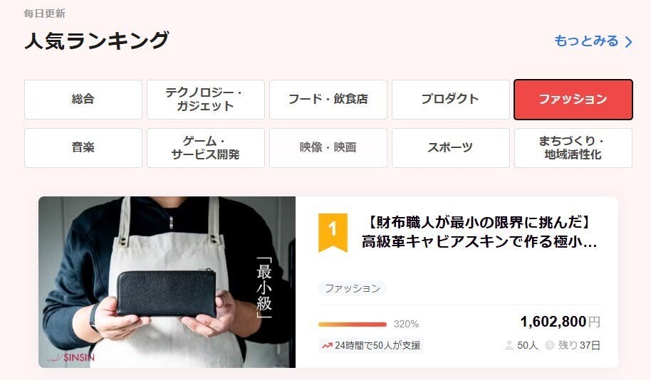 ▼「極小L字長財布フルート」のプロジェクトページはこちら