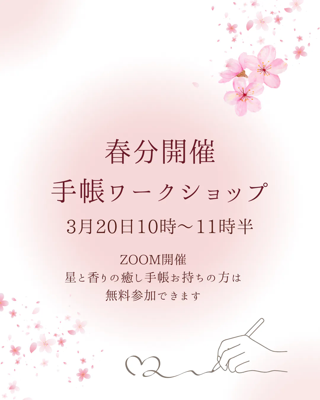 2026/03/19 08:00皆様、お久しぶりです!星アロマライフです!星と香りの癒し手帳は暮らしの中で楽しんで頂けているでしょうか?沢山活用してます!楽しんで使ってます!というお声を頂く一方でワークシートをやっていないまだうまく活用できていないという方々も多くいらっしゃるようです。そこで今回!直前ではありますが3月20日(金)春分に手帳の春分ページを用いオンラインでのセミナーを開催します!占星術では春分は1年のスタートともいうべき特別なタイミングとなります。今年は特に、3月19日魚座新月→3月20日春分→水星逆行終了・全天体順行という特別な流れがあり、始まりのエネルギーがとても高いです。手帳を使って、あなたのテーマを言葉にしこれからの流れに乗る時間を共にしましょう!セミナー内容:・3月20日10時〜11時半・オンライン開催(ZOOM)無料 *参加資格: 2026星とか香りの癒し手帳お持ちの方(お持ちでなくても今回ご購入で参加可能)内容:・春分の宇宙からのメッセージ・6テーマで3ヶ月の振り返りとこれから3ヶ月への意図をセット・手帳の使い方シェア交流一緒にこのスタートを迎えたい、手帳をもっと活用したい方ぜひご参加ください☆↓お申し込みはこちらお申し込みフォームまた、手帳をご購入ではない方もこのタイミングでご購入いただきましたらワークショップも参加可能です。手帳のご購入はこちら↓からお願いします。手帳購入サイトセミナーで皆様にお会いできること楽しみにしています! もっと見る