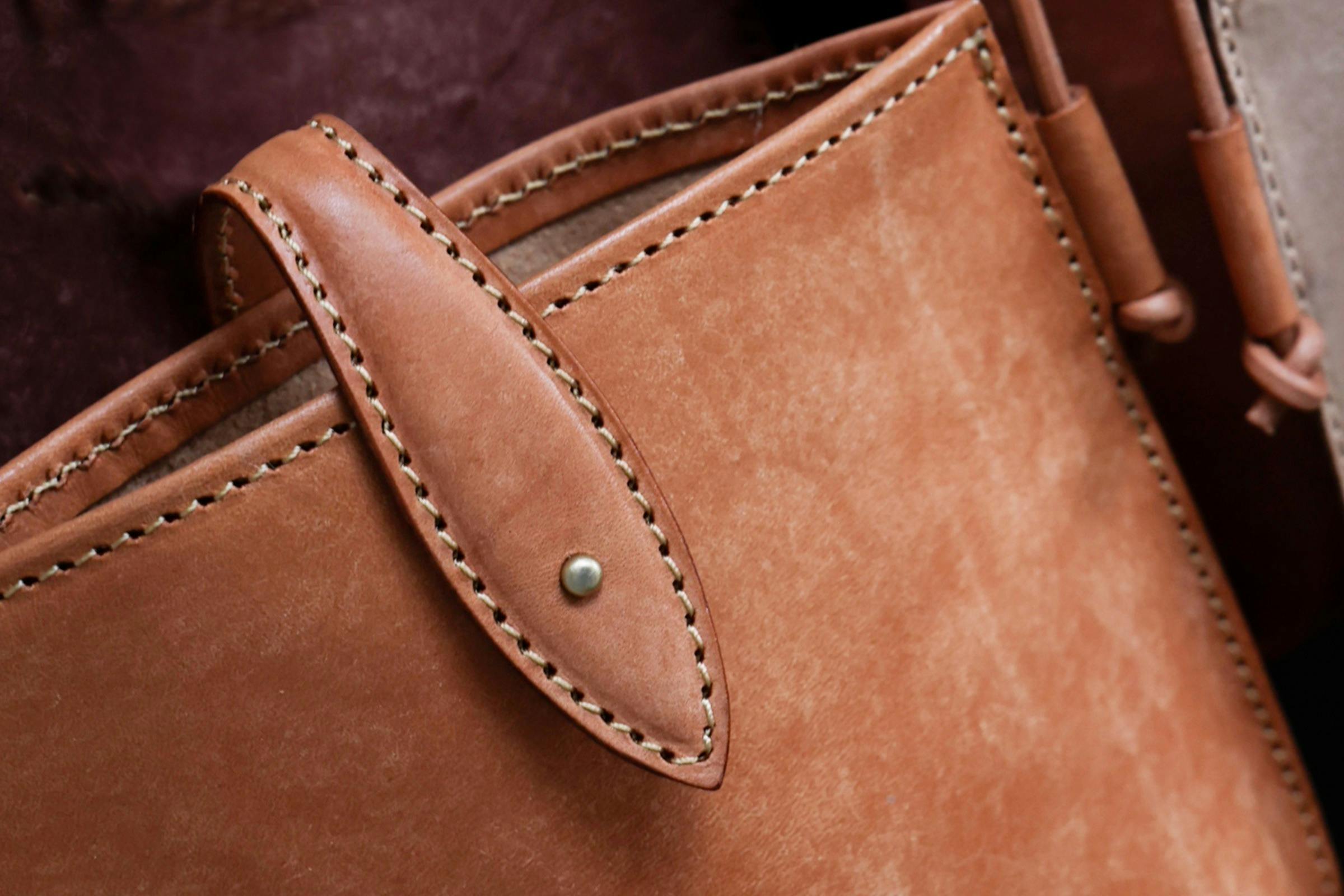 本革バッグの製造は、まず革を必要なサイズと