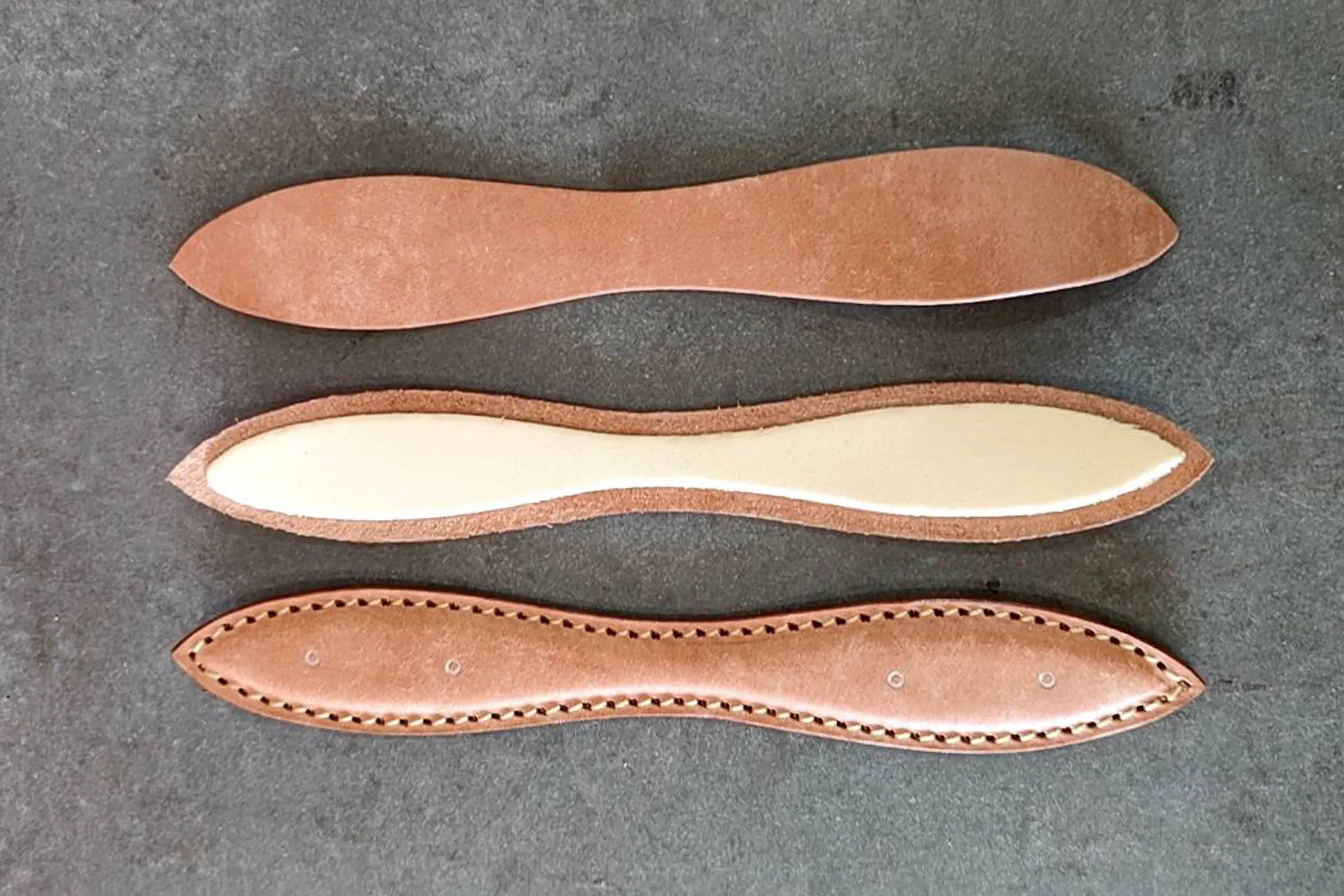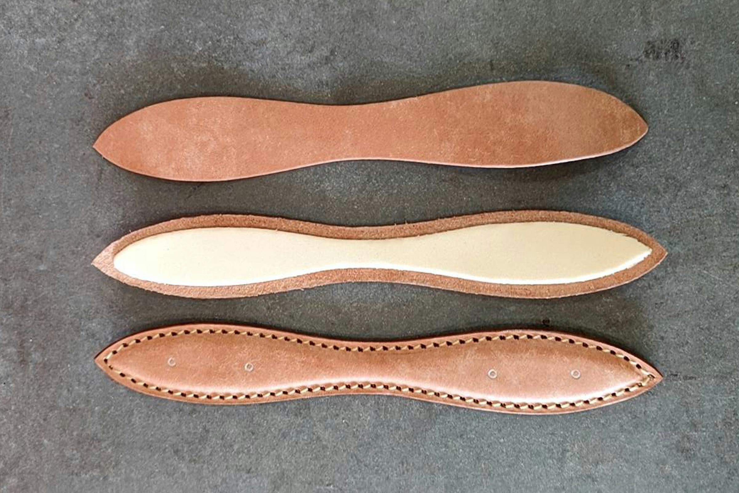革の間にクッション性のあるスポンジを挟んだ