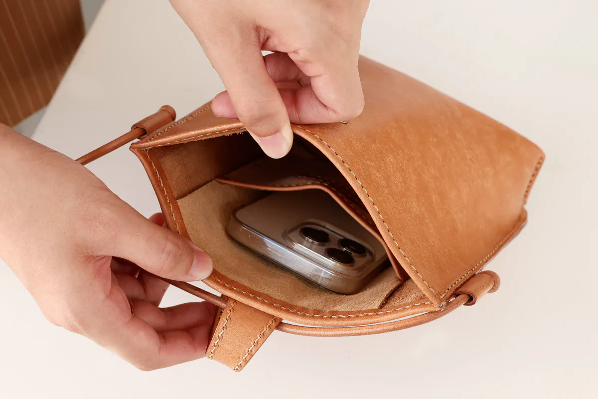 iPhoneがスッポリ収まるサイズ感。