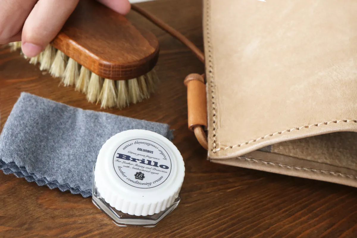 革表面をブラシで擦り、革にわずかに残った