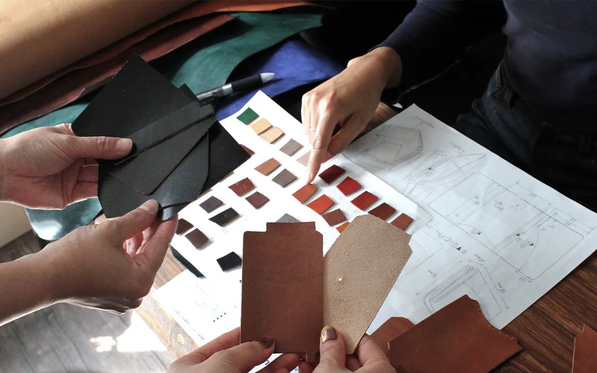 本革バッグの製造は、まず革を必要なサイズと