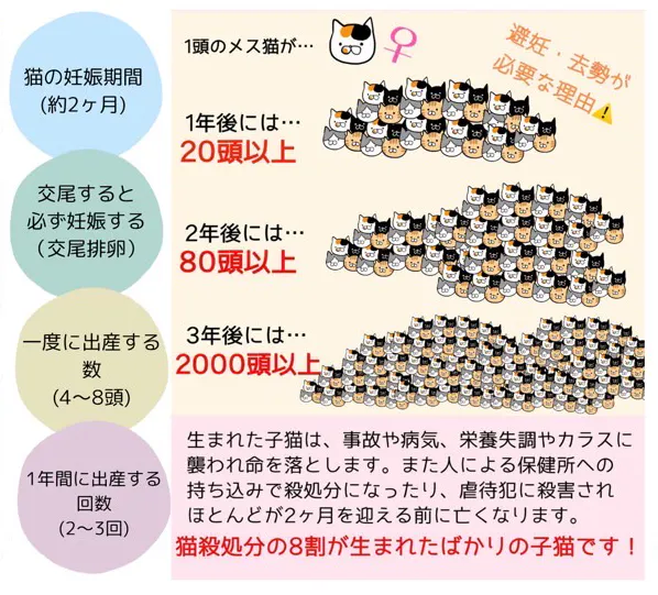 不妊・去勢手術をしないと野良猫が増えすぎて様々な地域トラブルや殺処分にも繋がり、