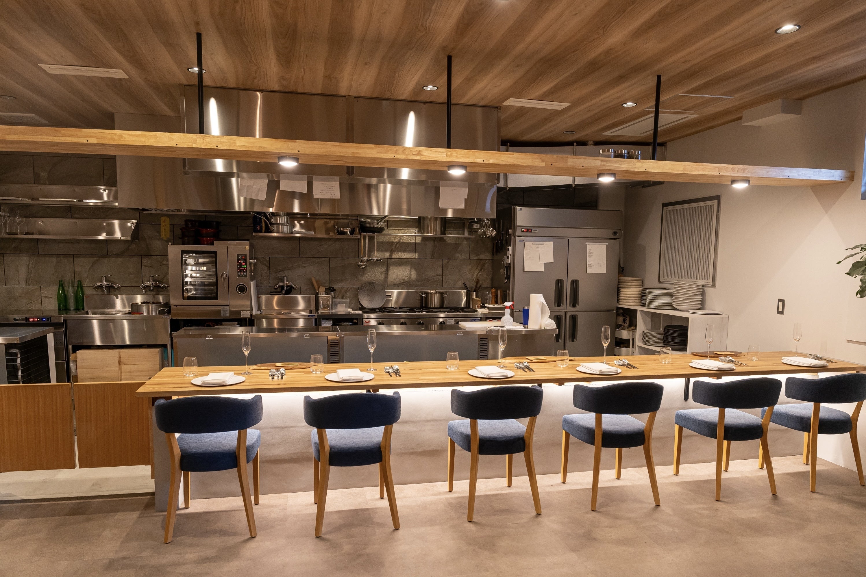 具体的に私たちの目指すレストランはカウンター席を中心に構成し、お料理を作る過程を目の前で楽しんで頂ける『ライブ感』を大切にし、地元の旬の食材を使用した『お任せコース』を提供します。