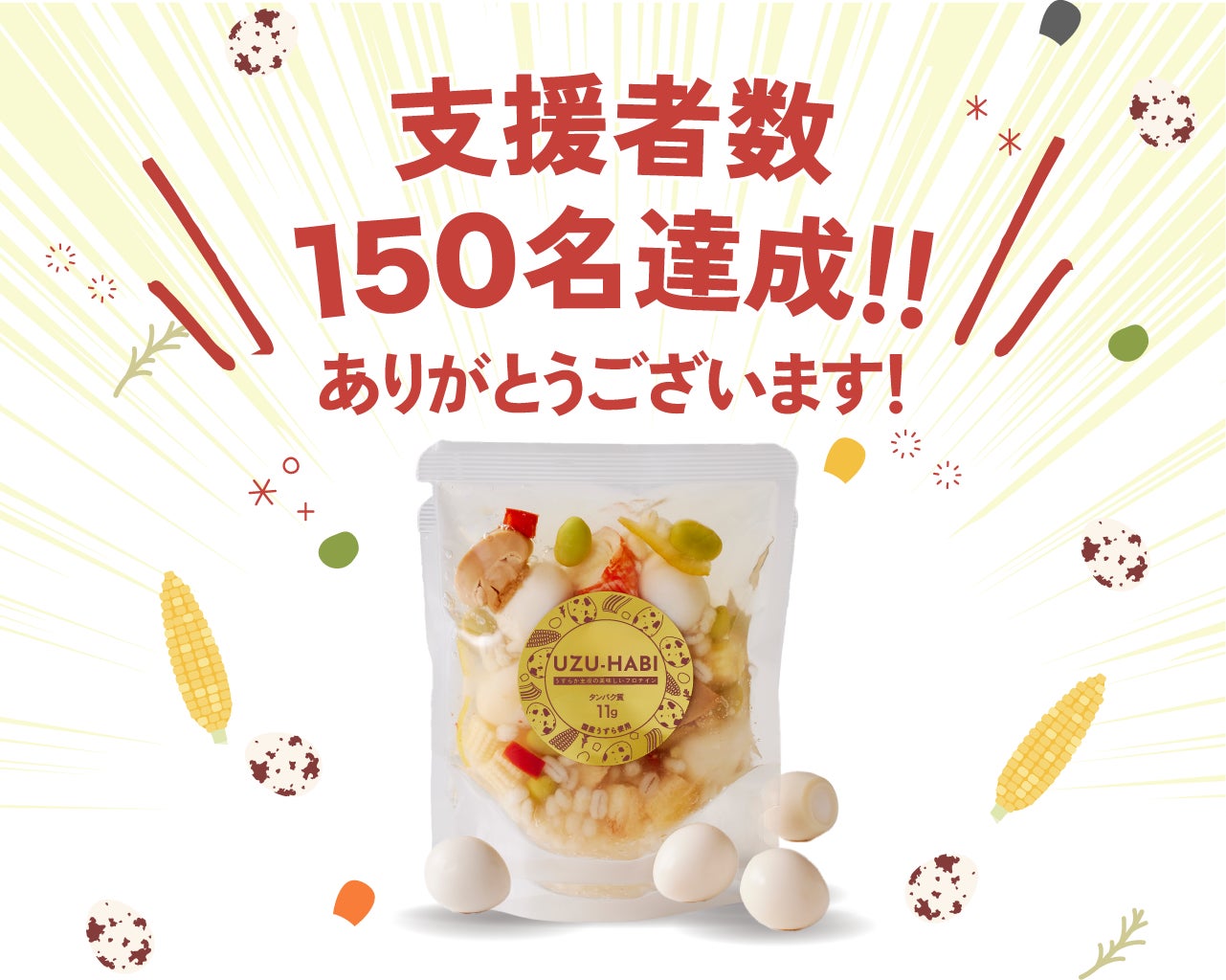 UZU-HABIを多くの皆様のご支援、誠に有難うございました! 引き続き、国産うずら卵を多くの方に愛して頂くために 新商品開発に力を入れてまいります。第2弾のクラファンも開始しました!