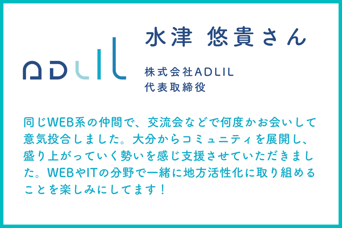今回は、福岡市のWEB広告代理店 株式会社ADLIL の水津さんからいただいた応援メッセージをご紹介します。