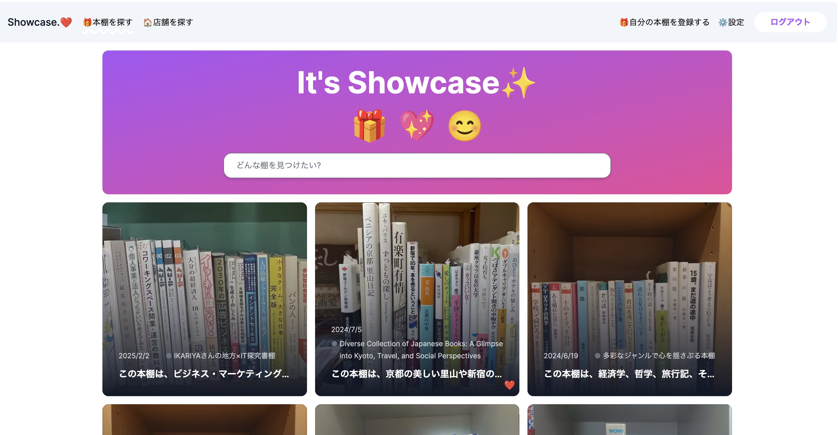 こんにちは!ゼロイチビレッジの碇谷です。CAMPFIREでの支援募集も、残り約5日となりました。今月もさまざまな方との出会いを大切にしながら、シェア型図書館のOPENに向けた準備も本格的に進めていきたいと思います。今日は、私自身がとても関心を持っている 小さな本棚をより楽しく魅せるオンラインサービス「Showcase.love」 をご紹介します。※正式にはloveの部分が絵文字になります。本文に絵文字を含めることができないため。こちらは、以前の活動報告でご紹介した「リブライズ」のプログラマー・Chikuraさんが開発を進めているプロジェクトです。以前の活動報告について:シェア型図書館OPENに向けて〜本棚を図書館にできるサービスのご紹介〜コワーキングスペースや居酒屋など、本屋ではないさまざまな場所の一角に置かれている 「小さな本棚」。それが 「本屋さん」 のような役割を持つことができたら、もっと面白くなるのではないか——。そんな発想から生まれたサービスです。現在、正式リリースに向けて開発が進められています。本棚を通じた新たなつながりChikuraさんはこれまでのご経験から「パブリックな本棚」 は人と人とをつなげる力を持っていると仰られていました。例えば、職種や趣味が近い人同士が 「どんな本を選んでいるか」 を知るだけでも、新たな発見や会話のきっかけが生まれると思います。「Showcase.love」の開発日誌やプロジェクトの進捗は、noteにもまとめられています。プロジェクトや技術的な部分にもご興味のある方は、ぜひChikuraさんのnoteもご覧ください。ゼロイチビレッジでは、こうしたサービスを積極的に活用し、本を通じた出会いや学びが生まれる場づくりを模索していきたいと考えています。引き続き、温かい応援をどうぞよろしくお願いいたします!↓↓ゼロイチビレッジの本棚も登録しています。