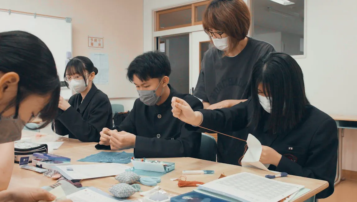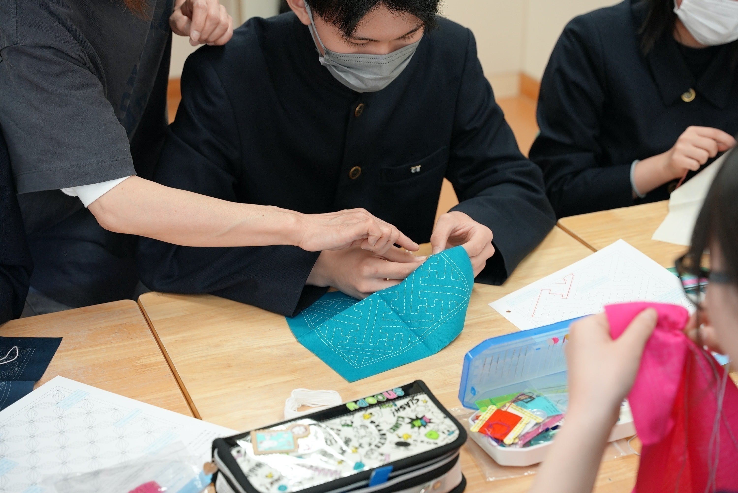 生徒たちは、週3時間の授業で刺し子の技術を学び、その魅力に触れています。
