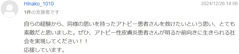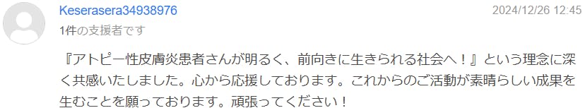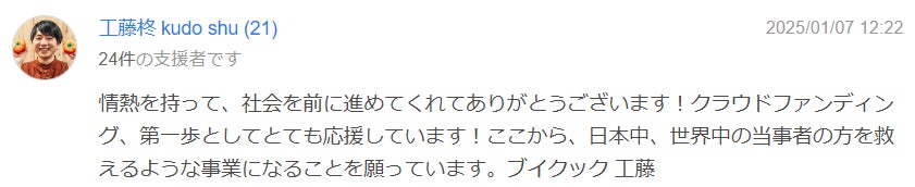 掲載許可が取れ次第、支援者様の声を掲載させていただきます。