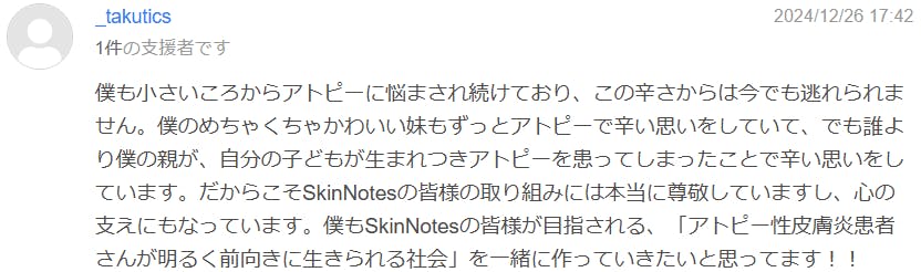 「本当の意味」でアトピー性皮膚炎に苦しむ人々に寄り添うことができると信じています。