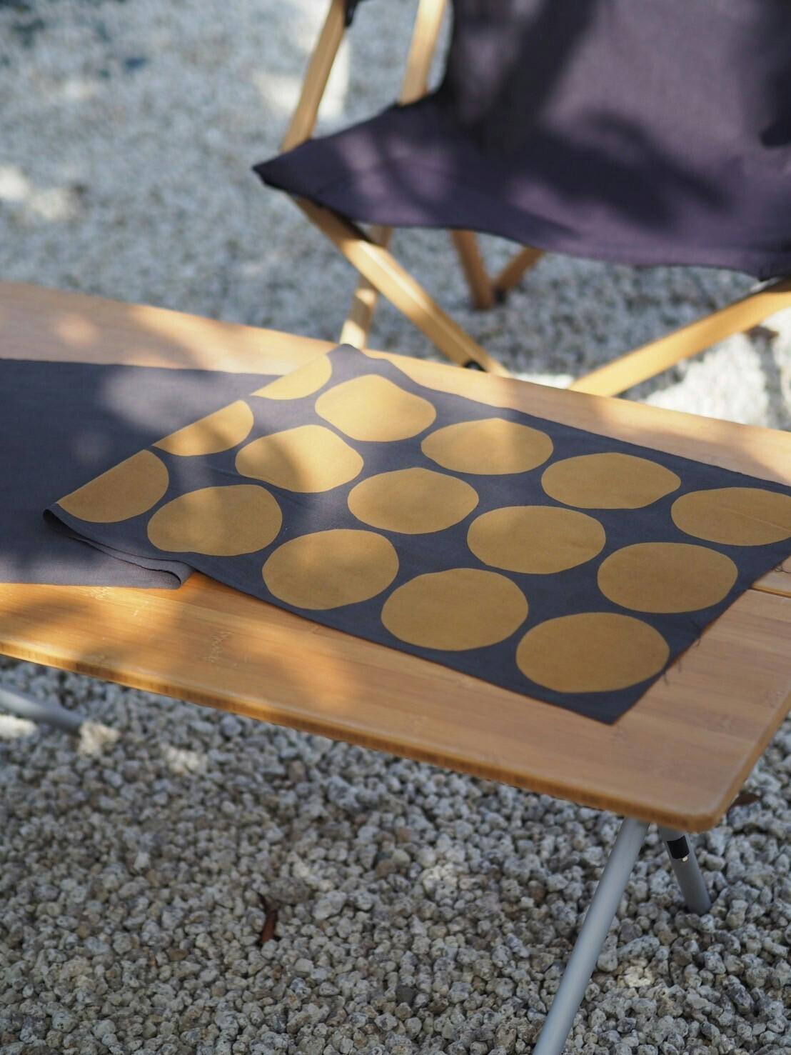 大きな丸を大胆に配置したかわいい茶の実柄の手拭いです。