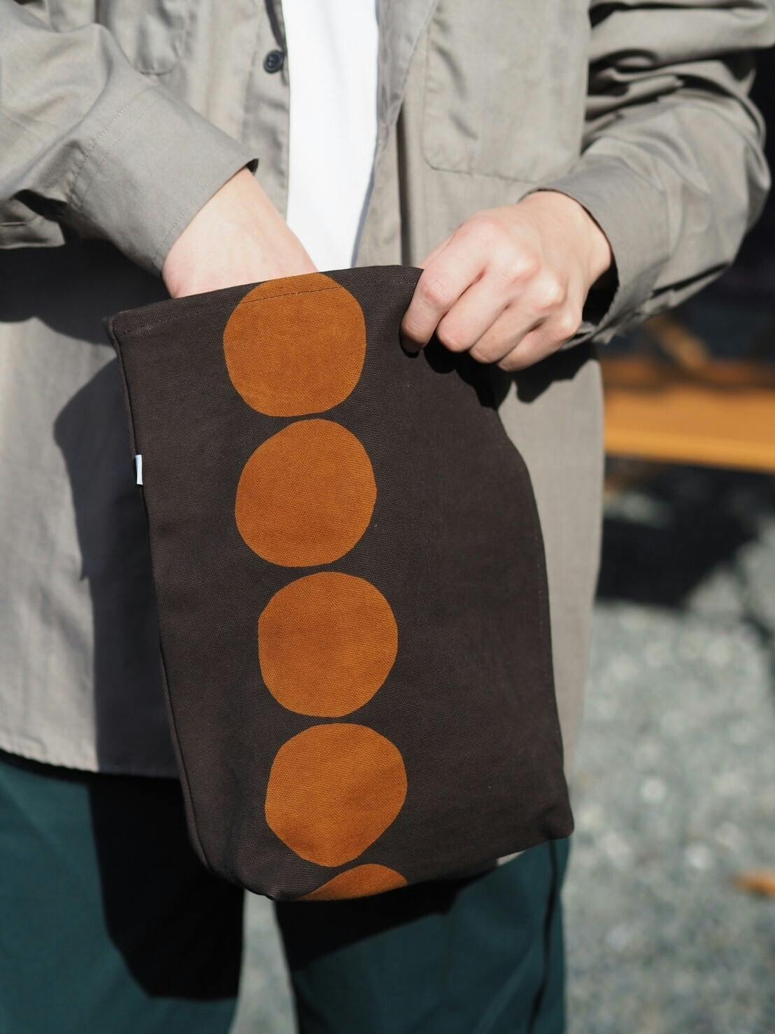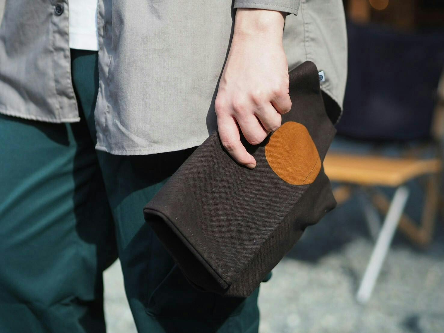 紙袋をモチーフにした商品で、チャックやボタンがないからこそ使い道は無限大。