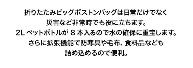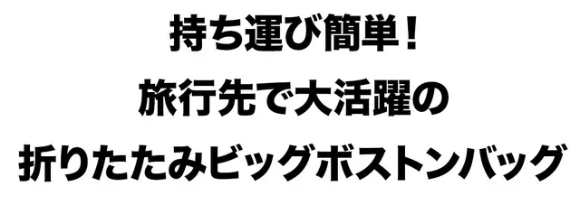 「折りたたみビッグボストンバッグ」は、旅行やお買い物、アウトドアなどあらゆるシーンで活躍します。