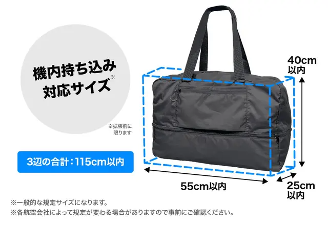 ファスナーをグルっと回せば拡張して容量アップ。高さが15cm、容量が18Lもアップするので予定外の荷物が増えてもしっかり収納できます。普段の買い物やお出かけ先で急に荷物が増えた際に便利です。