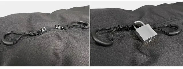 メイン収納のファスナーには鍵穴付きのロックファスナーを搭載。南京錠などを付ければ旅行先で防犯対策になります。※鍵と錠は付属していません。