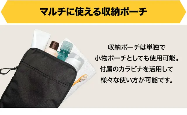本体にも収納ポーチにも使いやすくなる機能をたくさん詰め込みました。