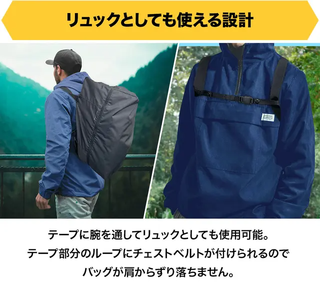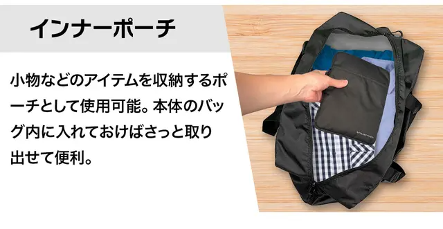 バッグ本体と収納ポーチ合わせてわずか461gという圧倒的な軽さを実現。軽いので持ち運びしやすく荷物が増えても快適です。