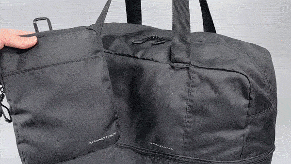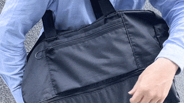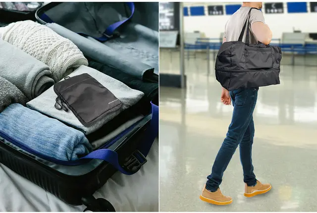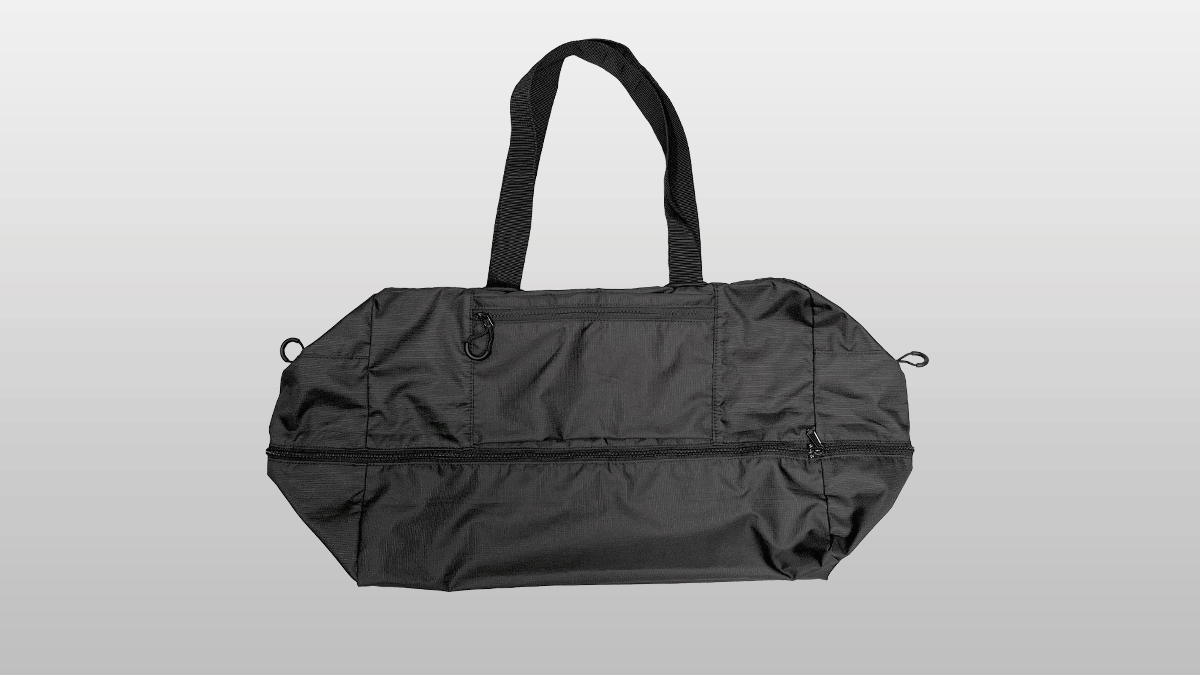 旅先で広げれば大容量のバッグに早変わり。お土産や買い物で荷物が増えてもしっかり収納できます。使わないときはA5ノートサイズにコンパクトに折りたたむことができるので、スーツケースにしのばせておけば持ち運びしやすく便利。