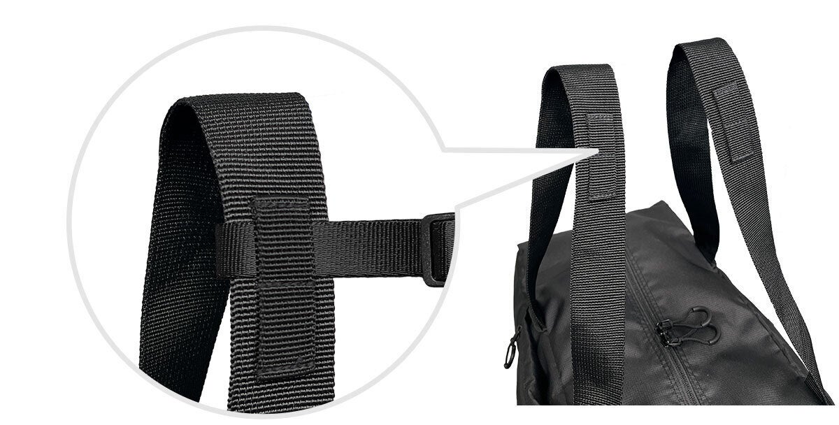 ドイツのパーツメーカーFIDLOCKのマグネットバックルを採用。バックルは一度付けばしっかりホールド。外す際はスライドするだけの便利な設計。片手で簡単に脱着でき便利です。余ったテープはゴムバンドで留められるのでぶらつかずに見た目もすっきり。リュックユーザーなら1つは持っておきたい便利アイテムです。