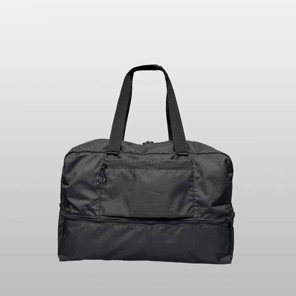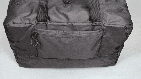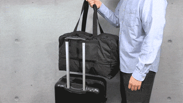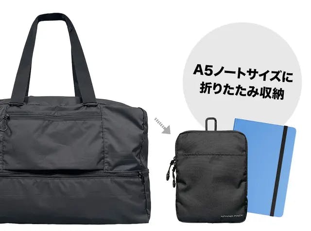 旅先で広げれば大容量のバッグに早変わり。お土産や買い物で荷物が増えてもしっかり収納できます。使わないときはA5ノートサイズにコンパクトに折りたたむことができるので、スーツケースにしのばせておけば持ち運びしやすく便利。
