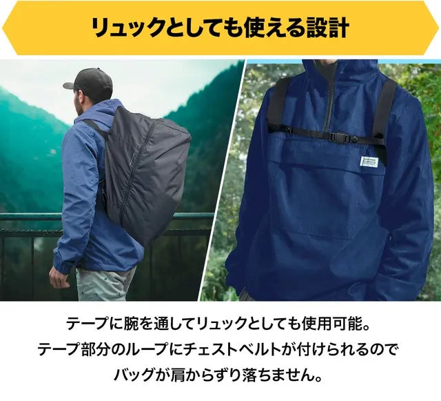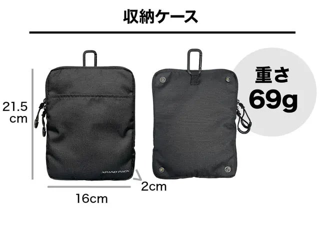 バッグ本体と収納ポーチ合わせてわずか461gという圧倒的な軽さを実現。軽いので持ち運びしやすく荷物が増えても快適です。