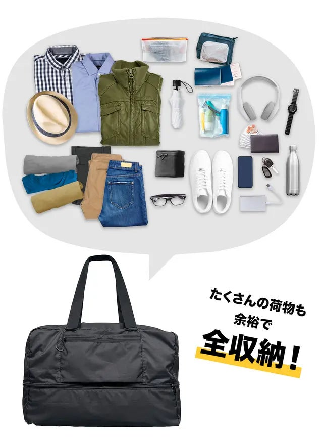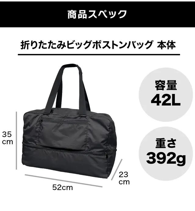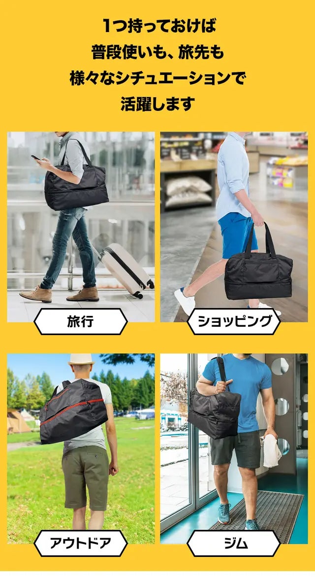「折りたたみビッグボストンバッグ」は、旅行やお買い物、アウトドアなどあらゆるシーンで活躍します。