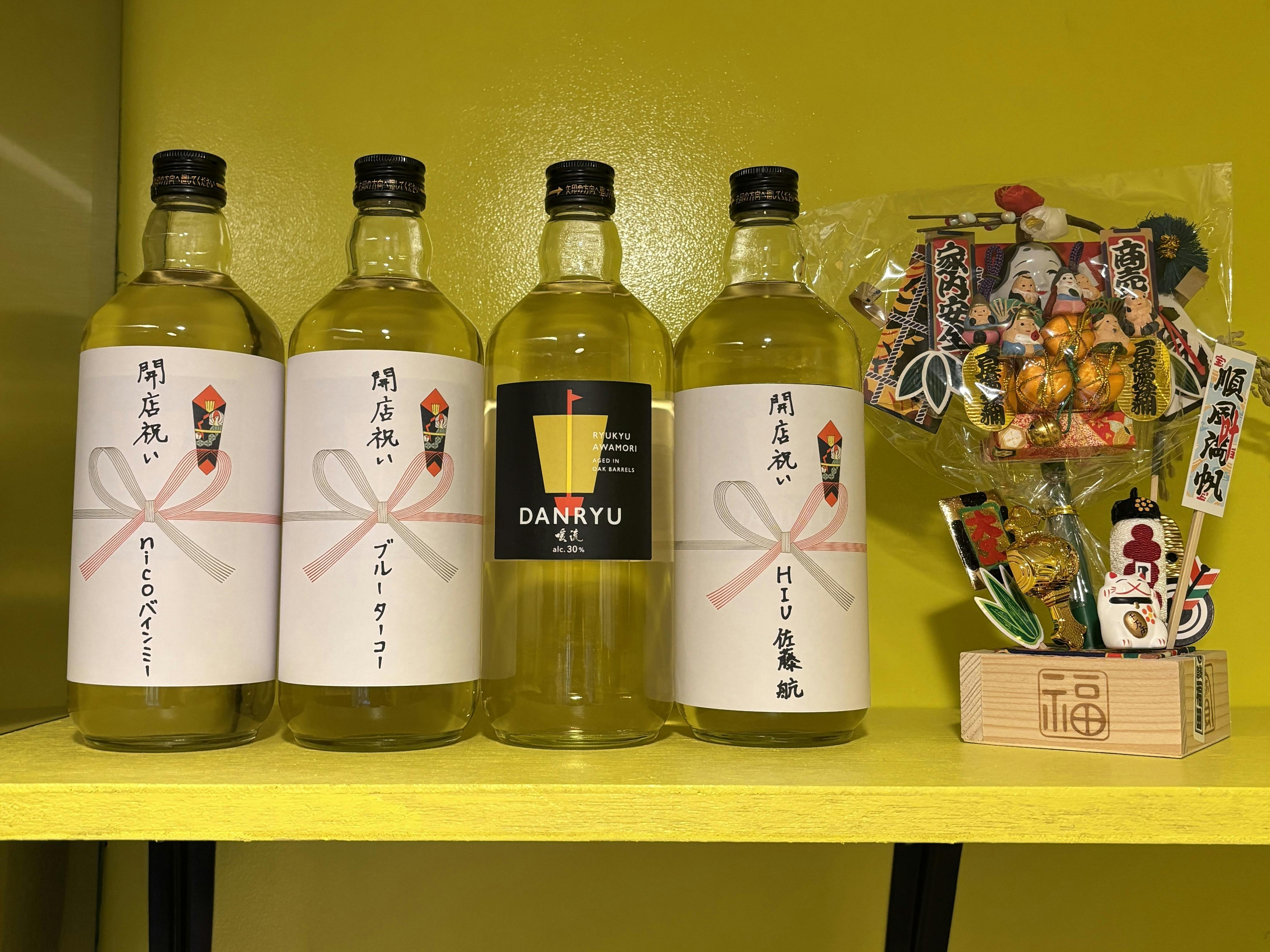 フードコートの為、ホールにも厨房にもお花を置くスペースがないので、開店祝いのお花の代わりに用意させて頂きました泡盛「暖流」に熨斗を付けさせて頂きました!HIU佐藤航さん、ブルーターコーさん、nicoバインミーのスタッフみんな、誠にありがとうございます!暖流のソーダ割り通称『ダンボール』を皆様に美味しくご提供させて頂きます!