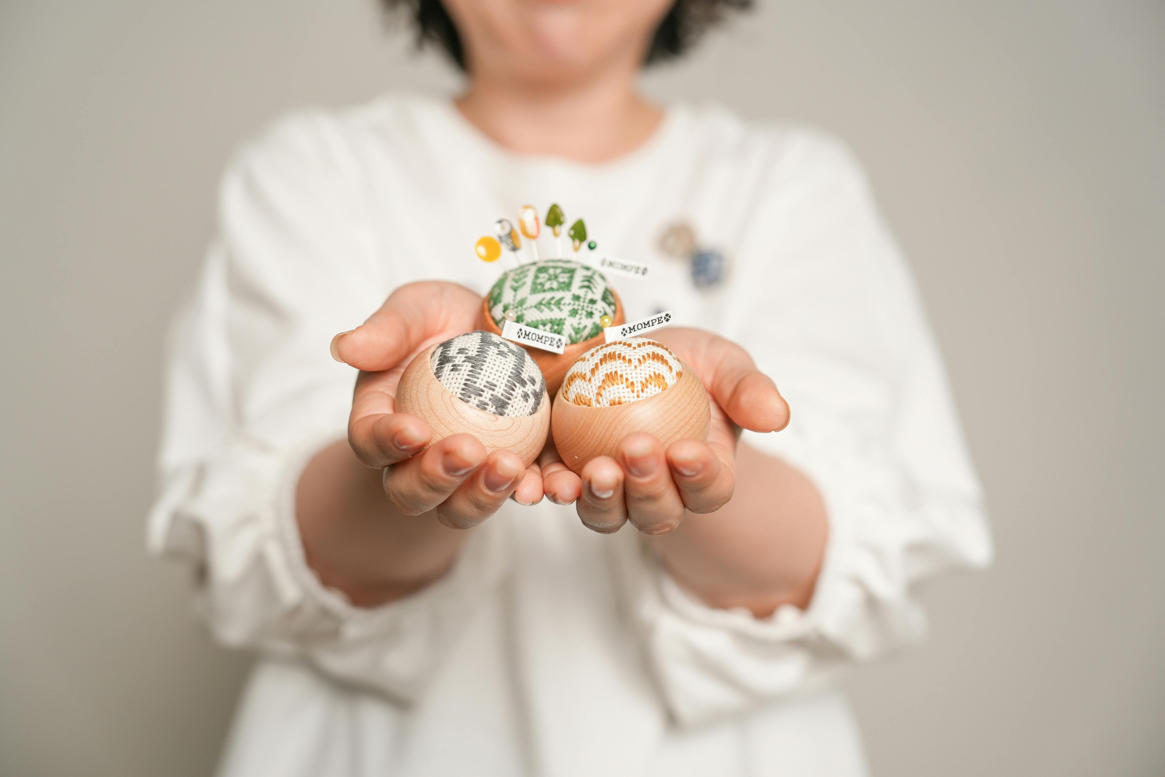 そして、手芸をするのに、道具としてかわいいピンクッションが欲しくて当時まだ始めたばかりのInstagramで検索して見つけたものそれが、こぎん刺しのピンクッションでした。作家さんが販売していた作品を購入しようとしたところ、その方が自分で作ることができるキットとして材料を販売していたため『これは自分好みのものを作ってみたい!』と購入したことが、最初のこぎん刺し作品を作ったきっかけです。当時はそれが伝統工芸の技法だということも全く知らず、ただ可愛いと心躍ったことを覚えています。