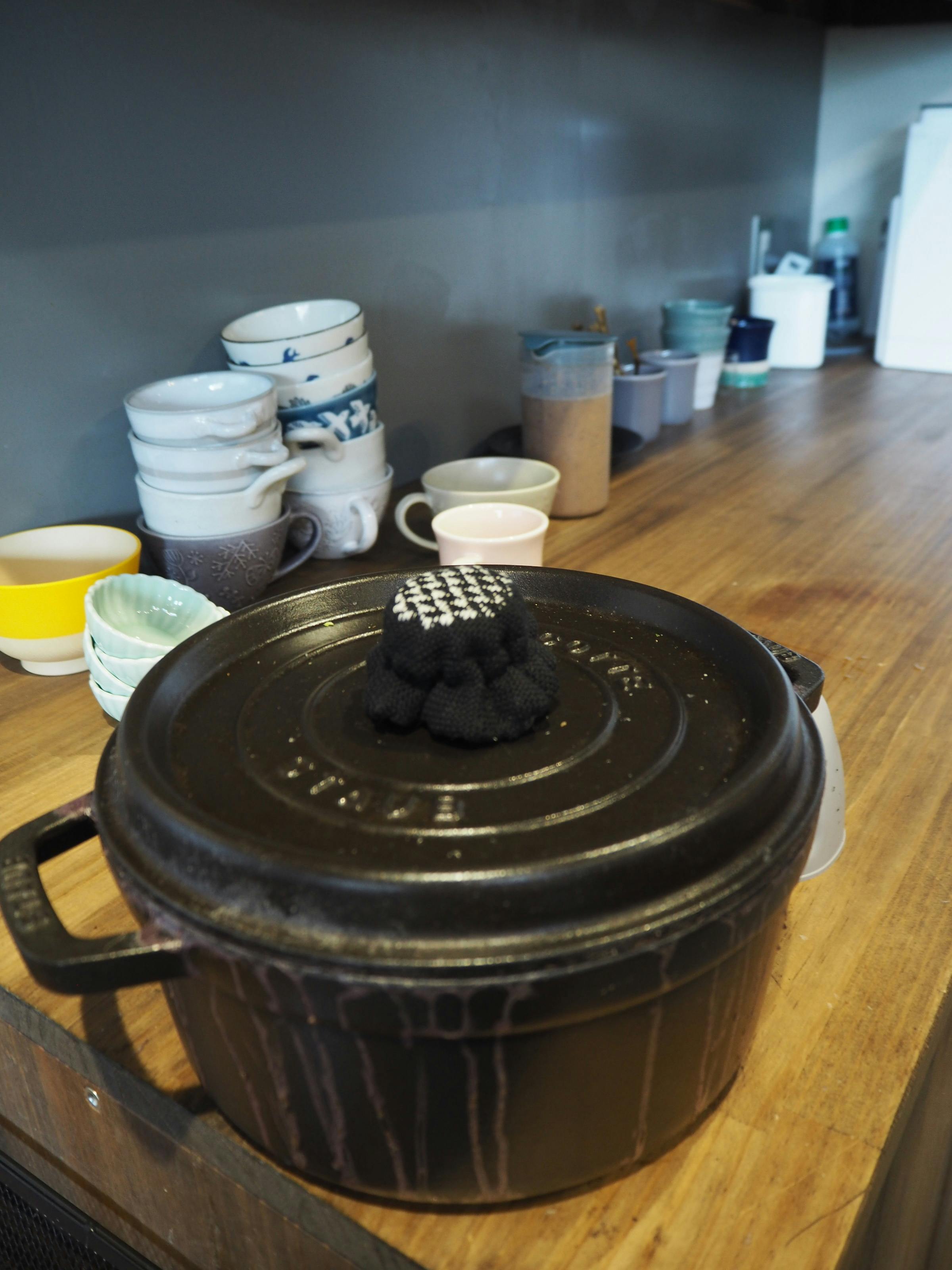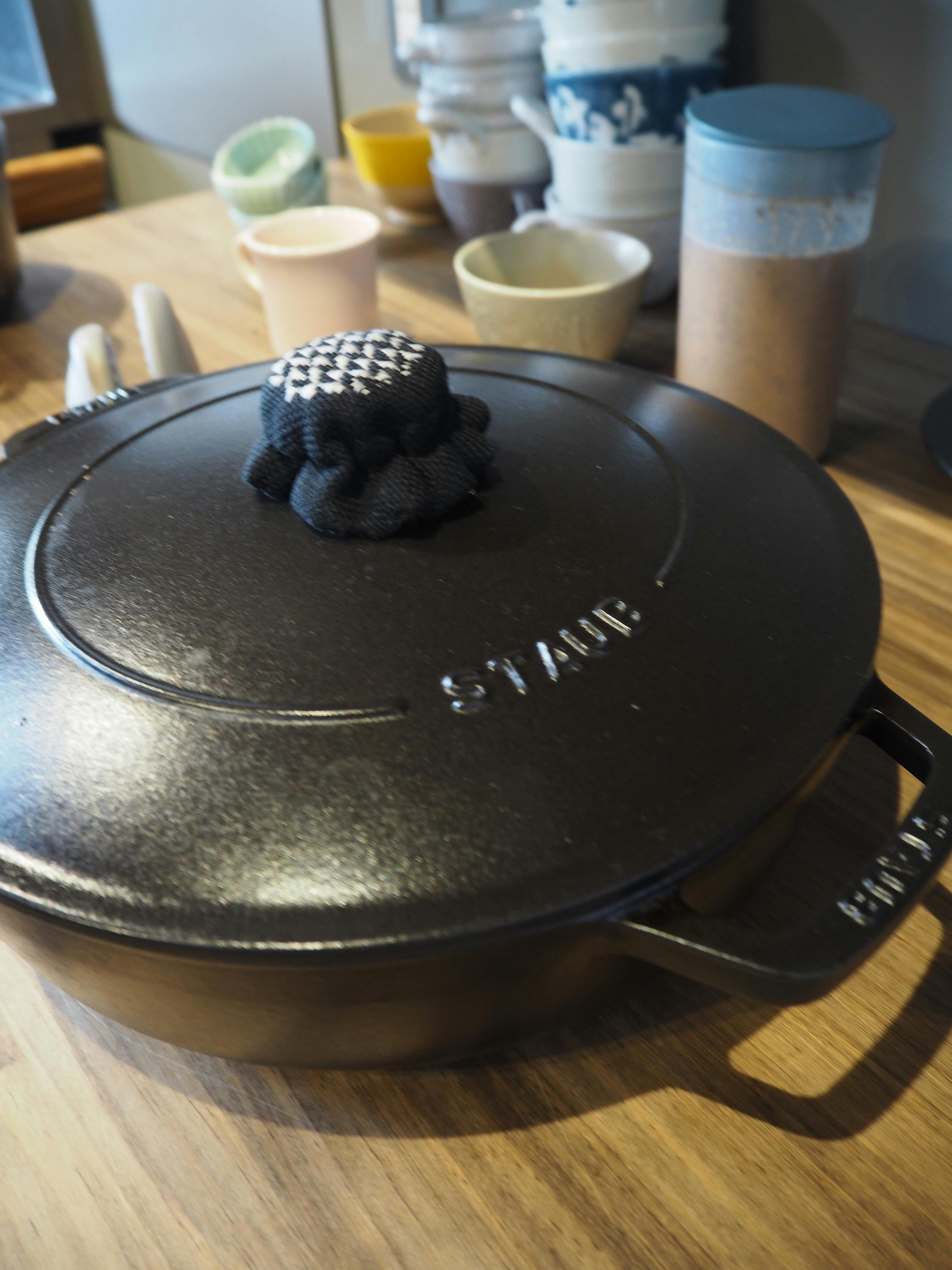 Meglu Market主催者の方から、『フランスでストウブの持ち手のカバーを作ったら売れるのでは?』とご提案いただいて作ってみました!このお鍋の蓋、金属なのでお料理中に相当熱くなるみたいです。Instagramでも色々な方から『私も欲しい!』とお声をいただきました。