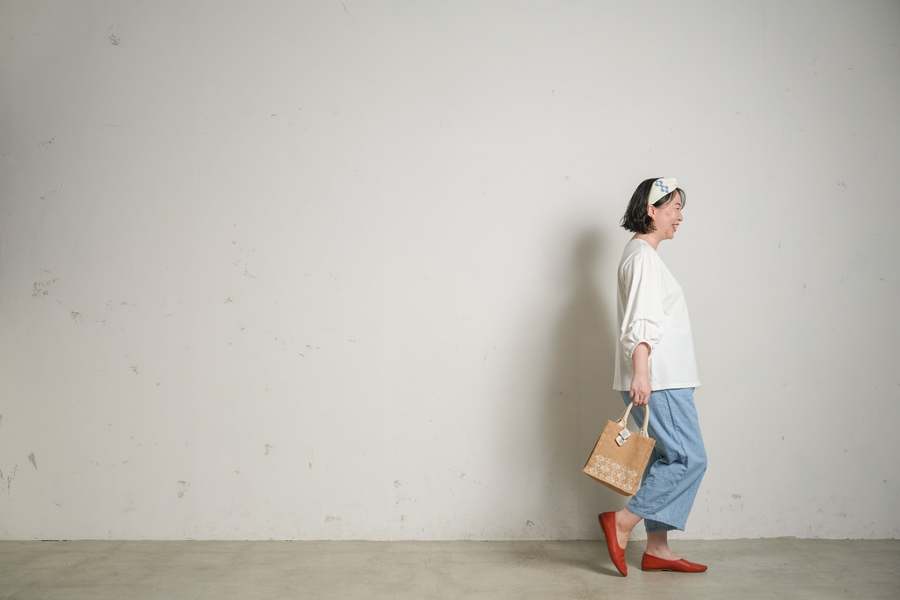 私は兵庫県に住む小学生の子供2人を持つ主婦です。2016年より*MOMPE*として、青森県津軽地方に伝わる『こぎん刺し』の技法を使ってアクセサリーや布小物をつかって制作・販売をしています。