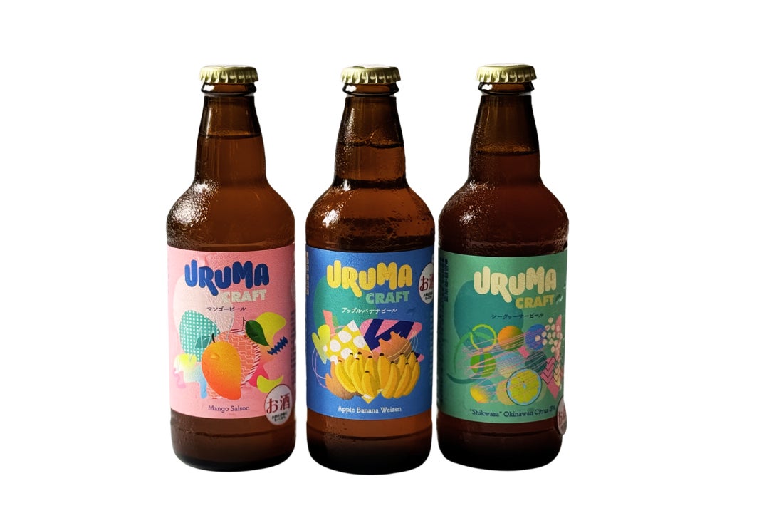 うるマルシェとコラボして誕生したうるま市産のアップルバナナのクラフトビール。他にもマンゴー、シークヮーサービールも開発して「うるまクラフト」と命名しました。