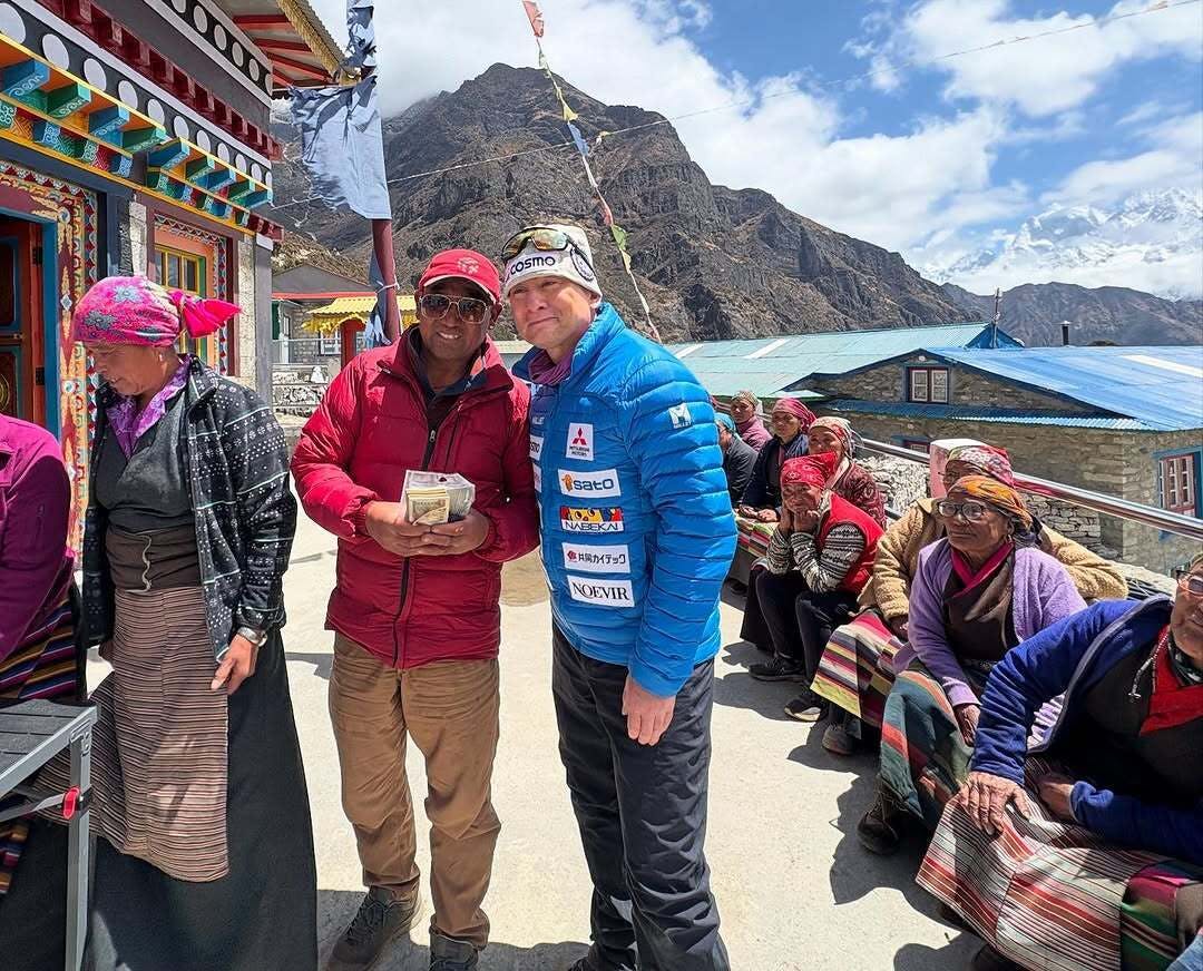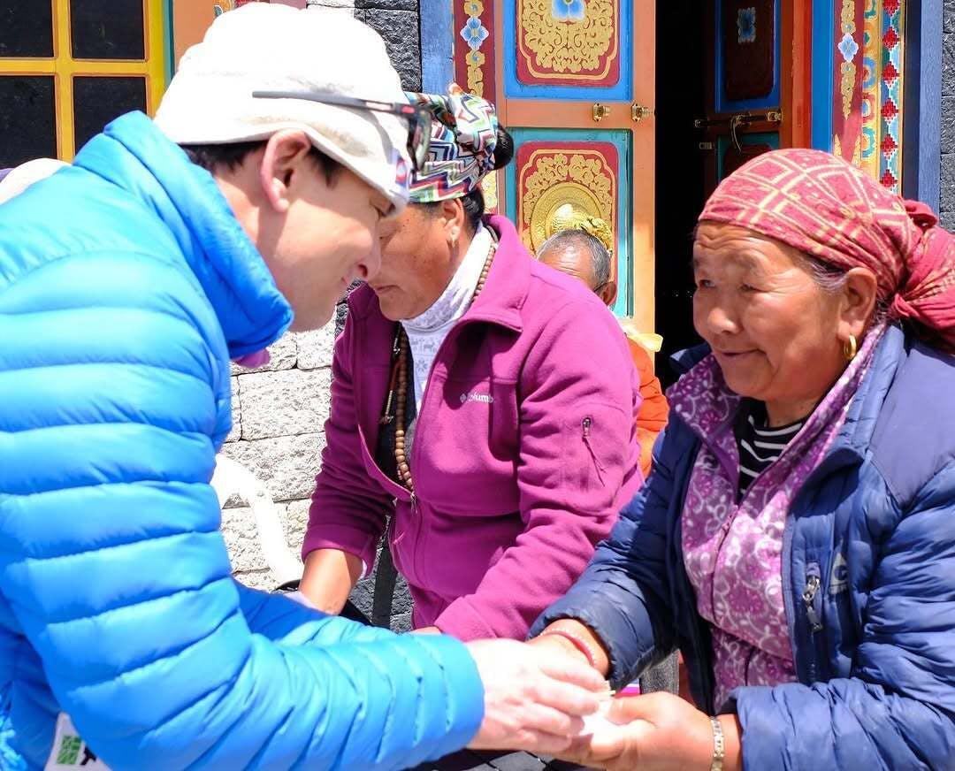 4月16日、理事長野口健は、義援金とキャリー・ザ・サンを現地に届けることができました。義援金460万円は、再建費用として、被災した人たちに家屋の被害状況に応じて分配しました。被災した人たちの現在の生活は、様々です。家屋を建て直し生活をやり直している人、親戚などを頼りカトマンズなど新しい地で生活している人など、それぞれ皆さん、歯を食いしばって生活しています。そのため、彼らが義援金として直接、受け取れるように手配しました。