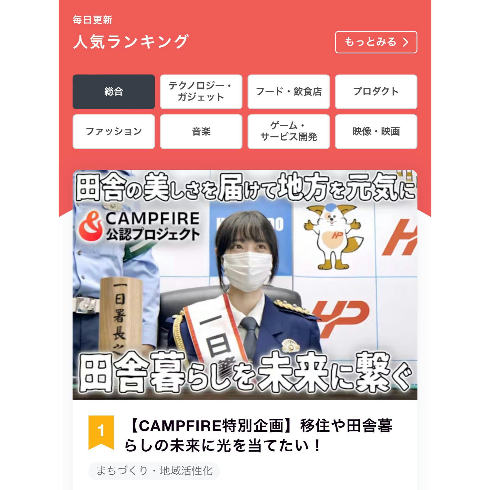すべてのCAMPFIREのプロジェクト中で