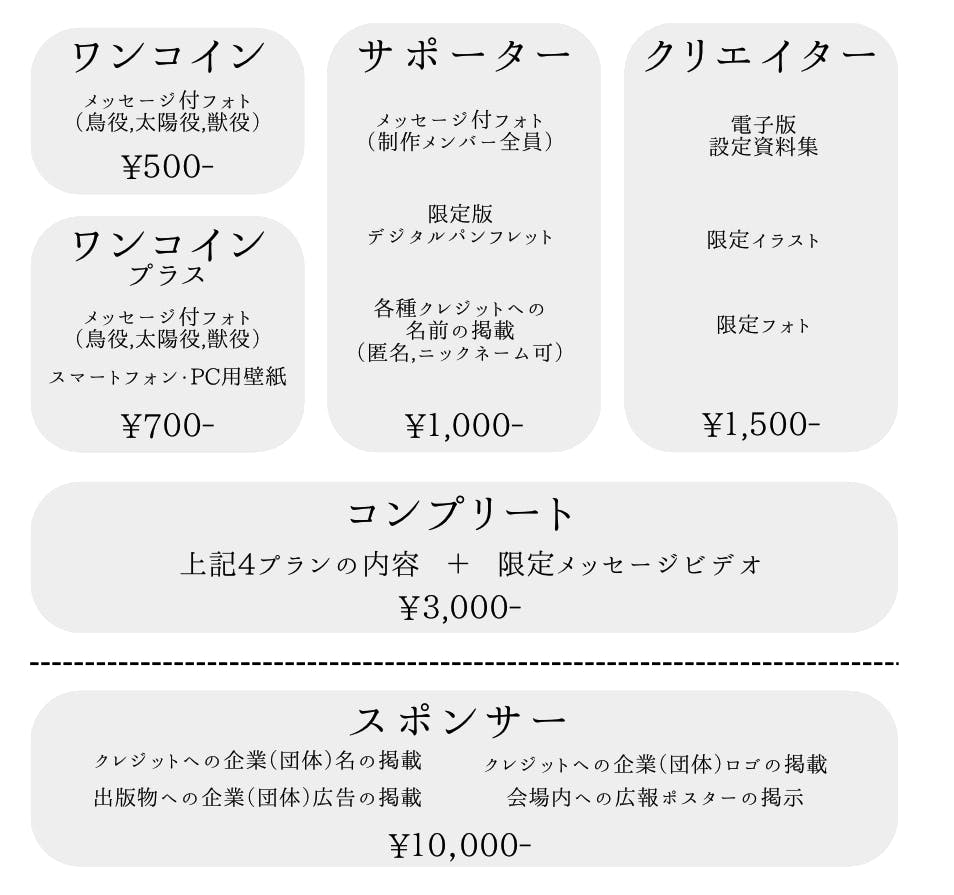 【メッセージ付フォト(鳥役、太陽役、獣役)】