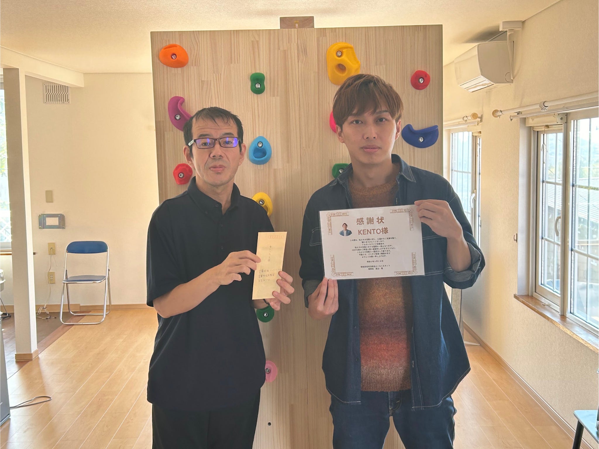 この度、室蘭市の特任広報官でもあり、シンガーソングライターとしてご活躍中のKENTOさんより、当法人に心温まるご寄付をいただきました。写真は、感謝状をお渡しした際の様子です。