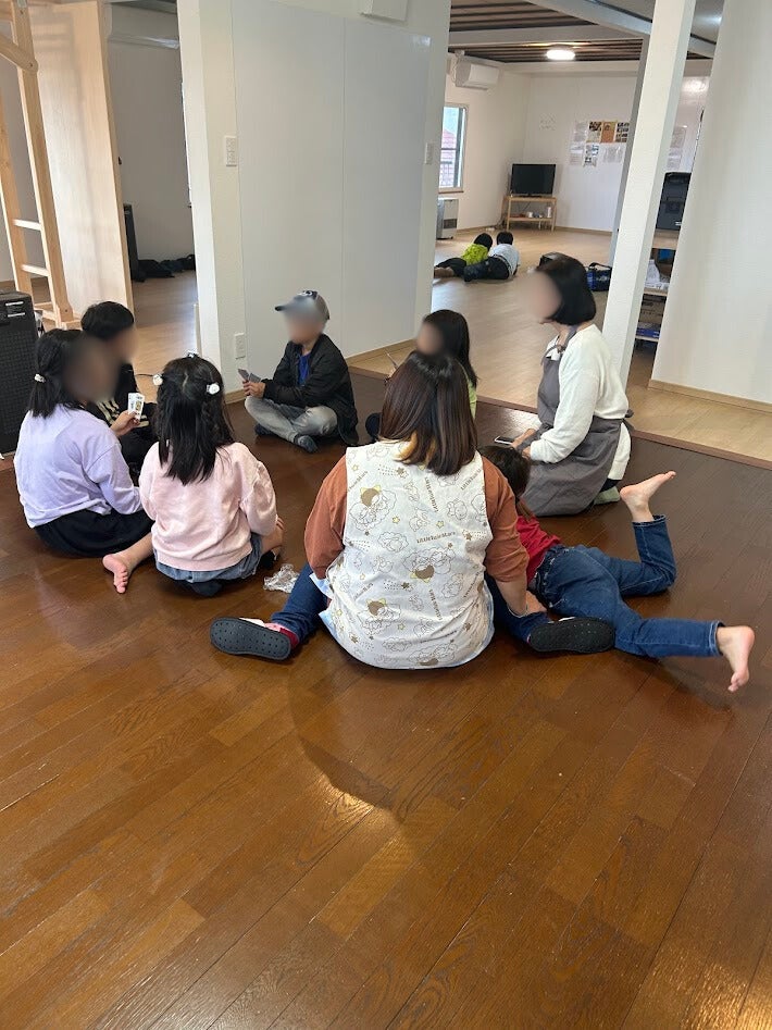 今日は、子どもたちが集まってトランプ遊びをしている様子をご紹介します!この写真に写っているのは、みんなで床に座りながらトランプを使って楽しい時間を過ごしている場面です。おしゃべりを交えながら、笑顔があふれる和やかなひとときが流れています。