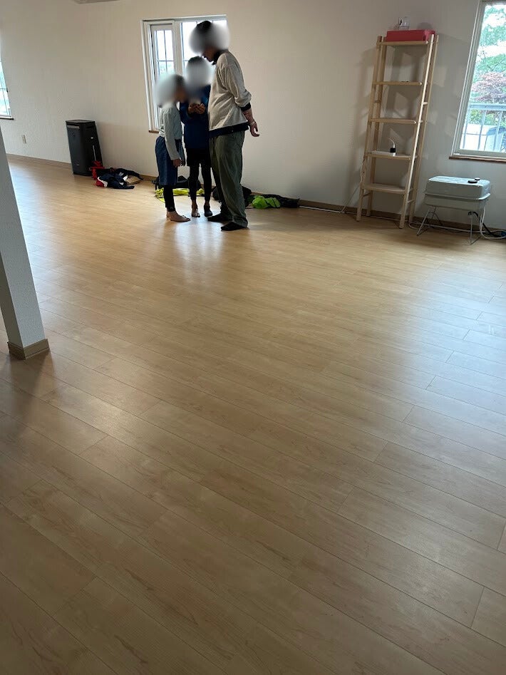 子どもたちと一緒に新しいスペースを活用する時間を過ごしました。この広々とした場所は、子どもたちが自由に動き回り、学びや遊びを存分に楽しむための大切な場所です。写真のように、まだ家具や装飾が少ないシンプルな空間ですが、その分可能性が無限に広がっています。