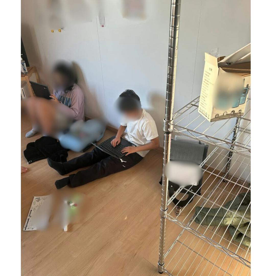 クルハウスでは、子どもたちがパソコンを使って学習に取り組んでいる様子が見られました。壁にもたれかかりながら、リラックスした姿勢で自分のペースで学習を進めている姿がとても印象的です。パソコンを使った学習は、子どもたちの集中力を高め、新しい知識やスキルを身につける絶好の機会となっています。