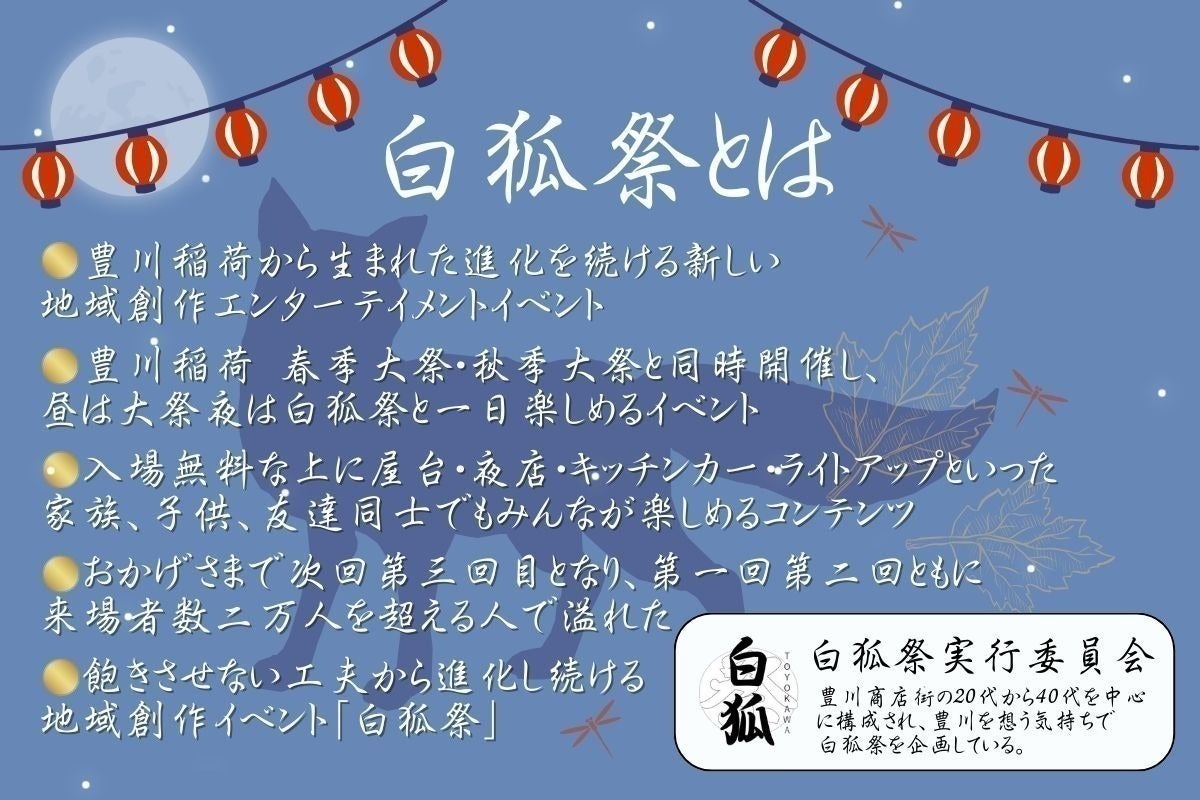 白狐祭は、豊川稲荷と商店街が一体となって作り上げる市民参加型のお祭り。