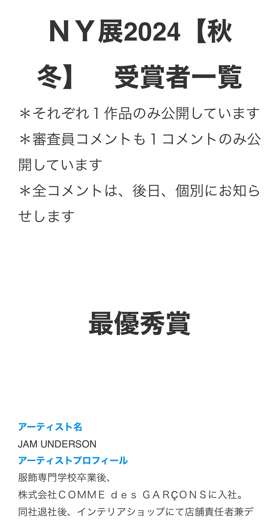 繊研新聞主催の、数百ブランド参加の展示会のコンテストにてグランプリ受賞。