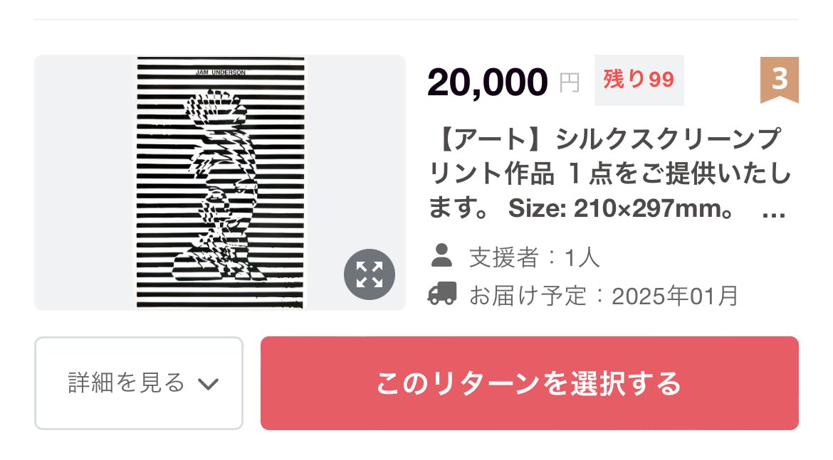 2024/10/10 23:10初めて見て下さった方からシルクスクリーンの作品でご支援頂きました!!コンセプトや作品を見て下さり応援したいと思って頂けたという事で、嬉しいです♬成功する事こそが恩返しです!と言って下さり、期待以上の活躍をしたい!と改めて感じております!このご縁に感謝しております!! もっと見る
